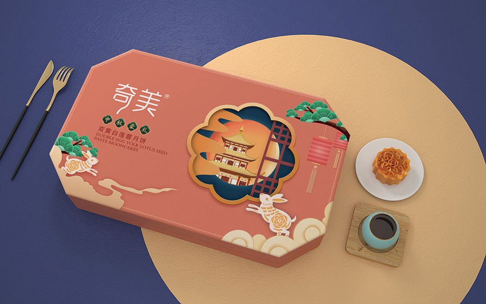 山東威海奇美食品有限公司是一家專業(yè)從事月餅研發(fā)和銷售的食品公司,是也設(shè)計受奇美公司委托,為其設(shè)計新款月餅禮盒包裝。